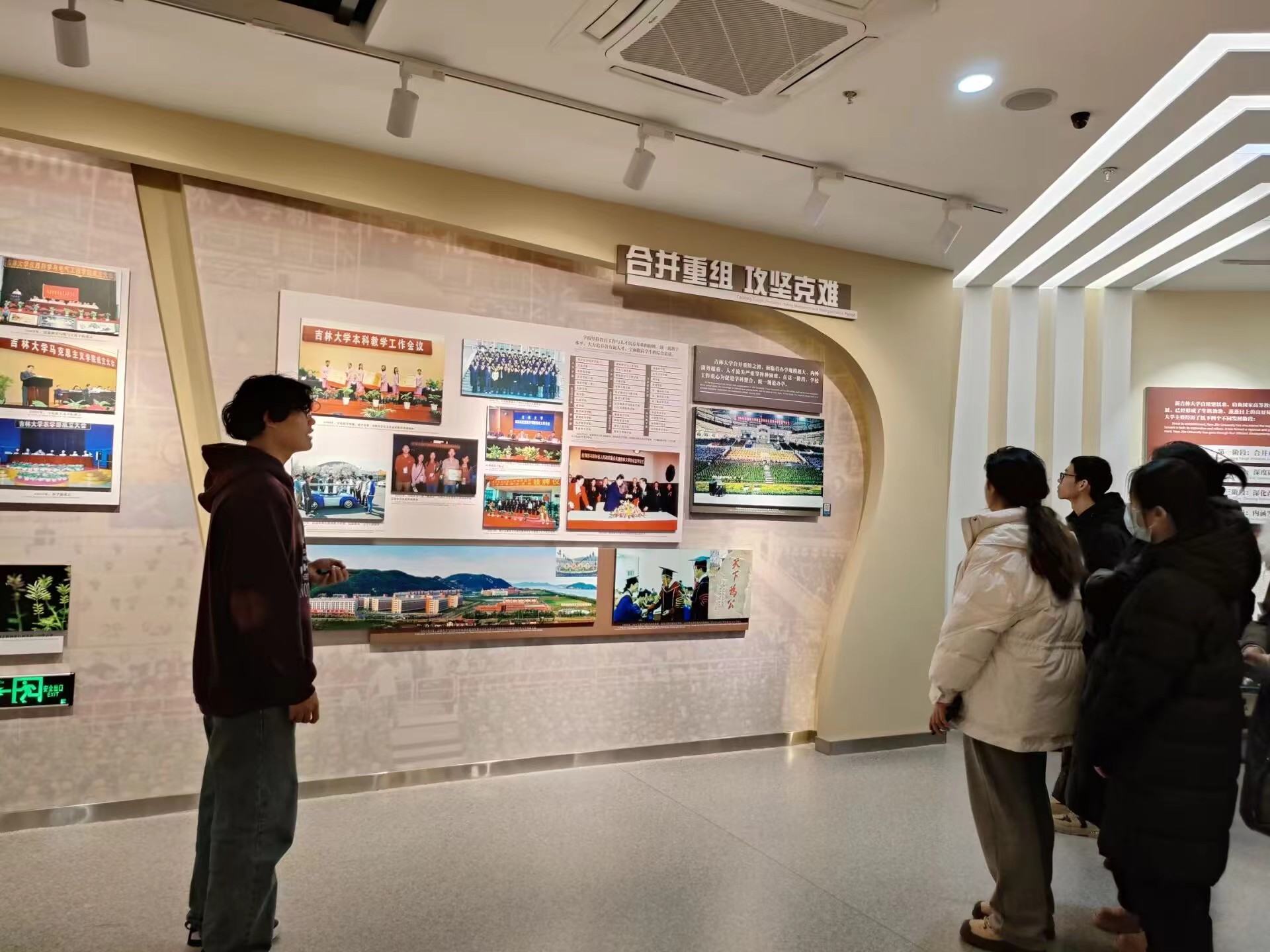 随后,同学们走过杏坛翘楚、光辉岁月、继往开来、星光璀璨等十余个展区,追溯了吉林大学合校前六大校区的光辉历程,详细地了解了学校从建校初期的筚路蓝缕,到跨越发展的蔚为大观,这一伟大而不平凡的道路。